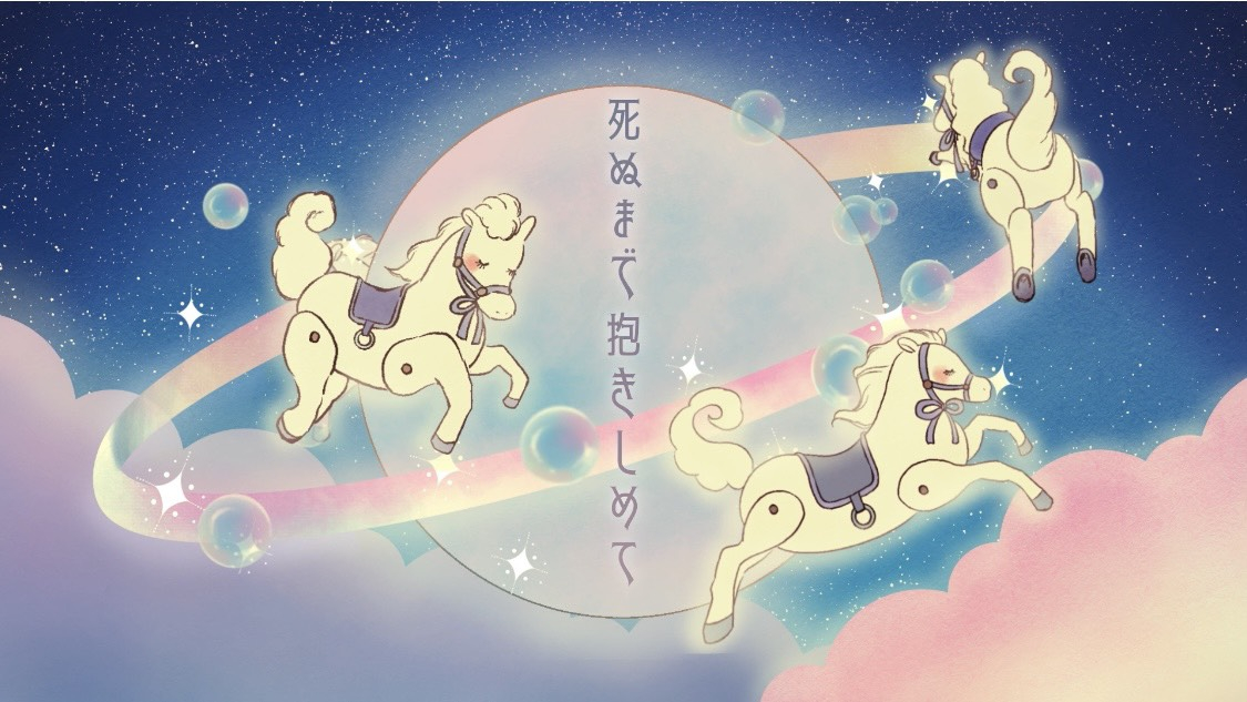 打ち合わせでこだわったのはメリーゴーランドのシーン。惑星のまわりをぐるぐるとまわる白馬たちはまるで夢の世界で、歌詞を書くときに思い描いていたものを具現化して下さった様でもあり、まったく新しい景色でもあり、とても感動しました。