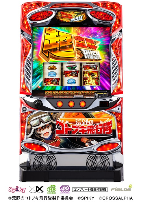 西部劇のような荒野が広がる世界を舞台に、雇われの用心棒「コトブキ飛行隊」としてレシプロ戦闘機に乗って戦うスゴ腕少女パイロットたちの活躍を描くストーリーで、実在のレシプロ戦闘機を精密に再現した3DCGアニメーションやこだわり抜いた音響が織りなす空戦シーンの迫力が話題となった今作が、2025年10月20日(月)よりパチスロ新台『L荒野のコトブキ飛行隊』として登場!