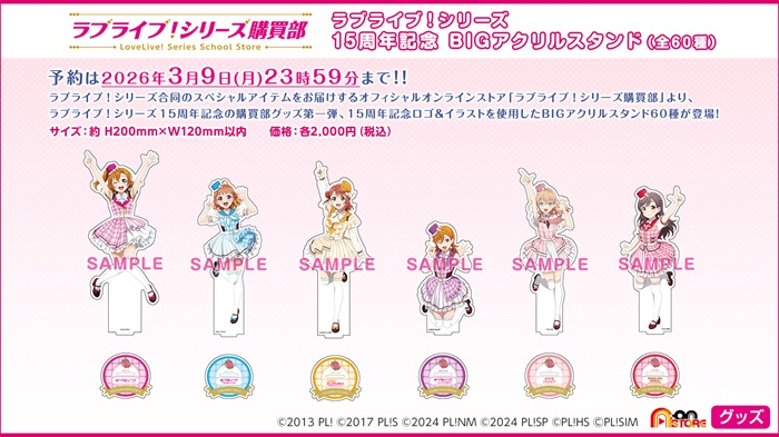 ラブライブ!シリーズ15周年イラストを使用したBIGアクリルスタンド全60種の発売が決定!本日2月21日18時より受注を開始しました。