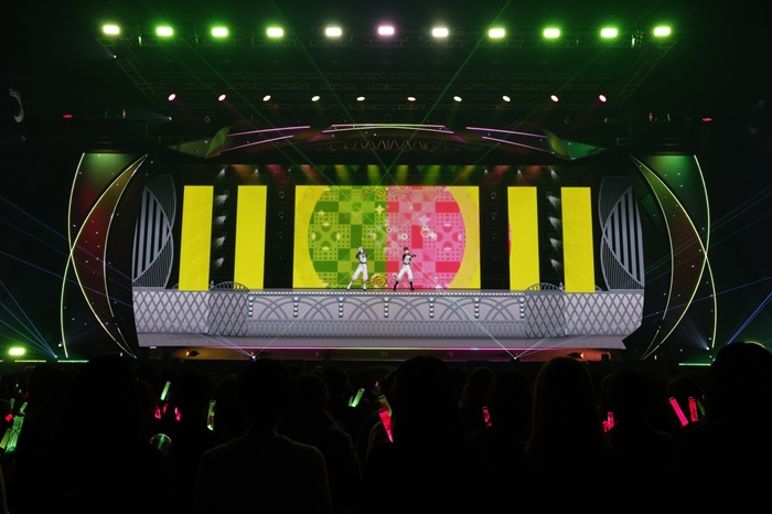 その雰囲気を引き継ぐように披露された「Tenuto」では、百と千が手を繋いだり、ハイタッチしたりするたびに観客が沸き立つ。照明によって2人のカラーであるビビッドピンクとペールグリーンの2色に染まった会場は、観客がRe:valeの世界に入り込んだかのような没入感に満ちていた。